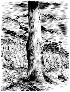 Acá ya instalado, cuando me sentí un rey porque no había cemento y me acordaba cómo hacer un fuego y tenía frío y una cerveza en la mano. Me cambié la camisa porque la otra era una asco, pero la lavé en el lago y quedó bárbara. Y cómo me gusta Sempé.A la gente amable de proveeduría que me proveía cerveza y queso rayado les dejé un dibujo de un árbol y me regalaron un pan casero y mermelada.