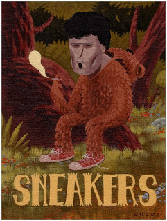Un pinturita que hice para y sobre Mark Lanegan. Uno que canta. Hay una canción que se entitula Sneakers, o sea zapatillas. Y trata sobre un oso que usa zapatillas, y la canta Lanegan, haciendo de oso. E hice ésto.