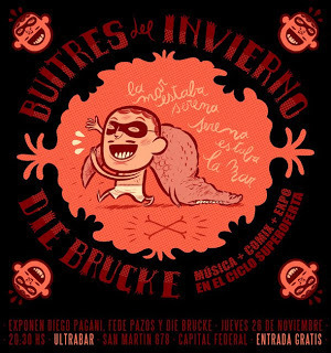 Un volero para la fecha de los Buitres del Invierno este jueves en el ciclo SuperOferta. Vengansé. Canciones sobre peces muertos, merengue, mariposas negras, papusas de fango, anarquismo y sangre azul. Y hay exposición de dibujos también y todo. Y gratarola.