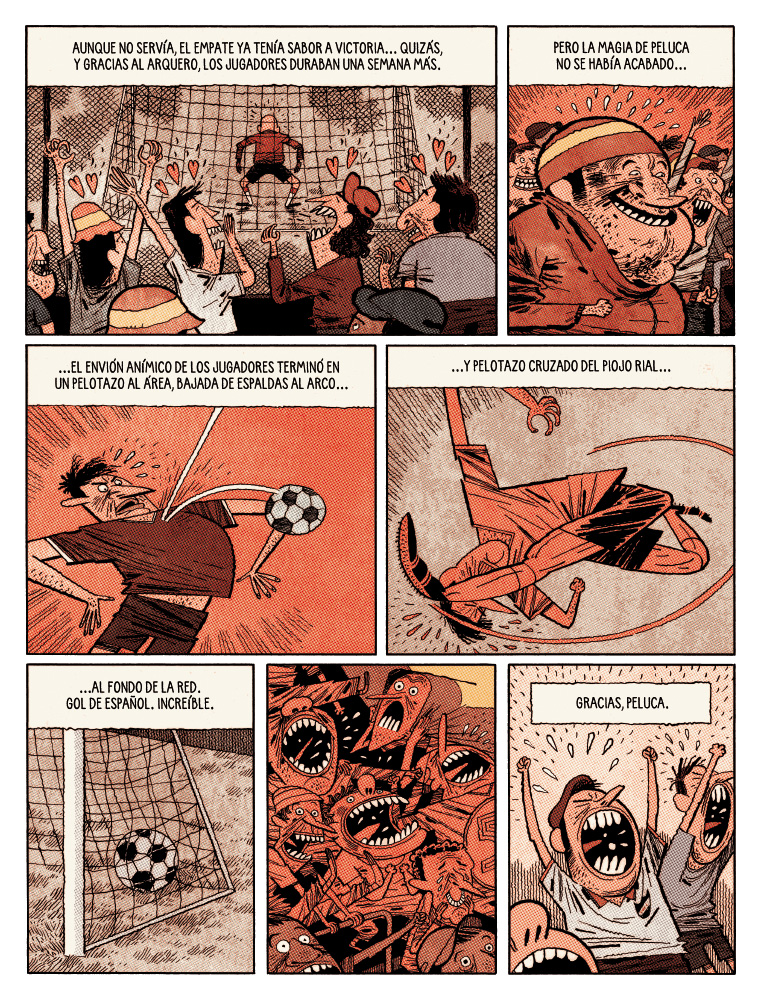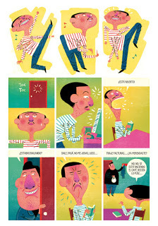Selección de páginas de "Peluca", historieta corta sobre un relato de Nicolás Esperante para el libro "DisTinta: nueva historieta argentina", de Editorial Sudamericana.