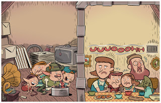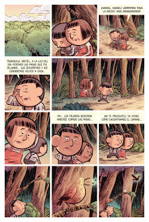 Selección de páginas de la adaptación a cómic de Hansel y Gretel para el libro "En el bosque", de Editorial Común.