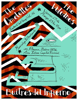 Fin de semana divertido voy a tener. Este viernes tocamos con Los Buitres del Infierno, e hice uno de estos cosos como para meterlos por las internets, y un montón de variantes de color porque sí.