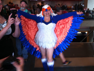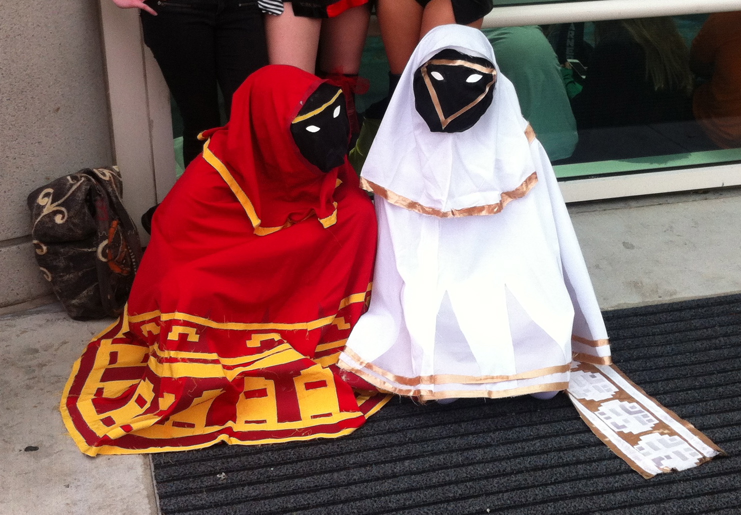 It feels weird posting a picture of this giant corporate balloon, but well, she looks cool! I wish I made that! I got to finally see how the costumes have totally taken over, and well, I really like it actually. I won't be there as a civilian again. I'll at least wear my disco jacket. Geez. A place where people dress fantastic can never be all bad. These two are from a video game called Journey? I tagged this #robedfigure on instagram and the only other thing that came up was a picture of them at another location. hm..