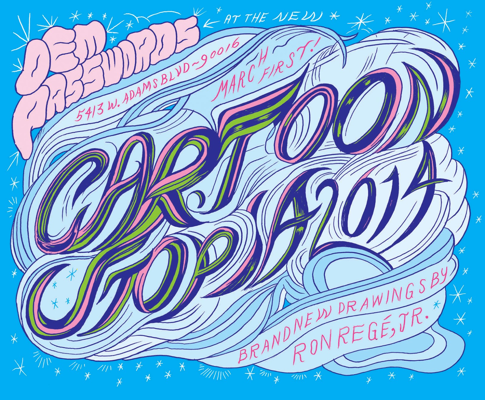 Dear friends, Please join us Saturday, March 1st at 6 PM for the opening of "Cartoon Utopia 2014," Ron Regé, Jr.'s, first solo-showing of artworks with Dem Passwords and the second show at our **NEW GALLERY LOCATION** on Adams Blvd! Facebook event link here...