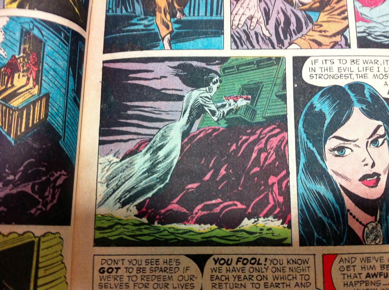 It includes this story where a sea-witch ghost turns a guy to stone & levitates him while he's sleeping and bashes him into frankenstein. He wakes up feeling refreshed on the next page. It's like a Kupperman comic or something!