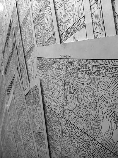-This book took me a long time to read. It's difficult, but it's also a comics masterpiece. Seeing it in terms of form and content is the key. I admit that I can get cranky and midwestern about this kind of subject matter and the difficult forms these comics take, but in the end I came around and can see the crazy experience of enlightenment shining through, the kind of thing that calls for this kind of presentation. It can be frustrating as the book jumps from weird thing to weird thing, your mind working overtime: "is dis a system?" "Huh?" That's the point, in a sense. It's like this...no--it's like this... How to explain something unexplainable, how to give form to a whole full bodied experience of being a half-crazy human being with ideas about peace and harmlessness and how one thing connects to the next? It's one thing to write this stuff, it's a whole other level to try and draw it in comics form. Ron is forced to stretch the comics language to communicate this overwhelming "material." Every aspect of comics warps or breaks, trying to hold on, readability, panel border, panel logic, etc. Utopia means "no place" and "the perfect world." You try drawing a map to it! RR is trying to really get some tricky stuff down on paper, and so the comics are tricky to read. What an accomplishment.