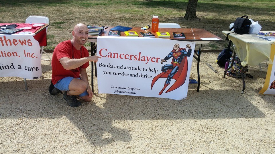 Visit my Cancerslayer table at this year's CureFest for Childhood Cancer event next Sunday afternoon, September 18, on the National Mall. (Photo, below: my Cancerslayer table at the 2015 CureFest event.)
