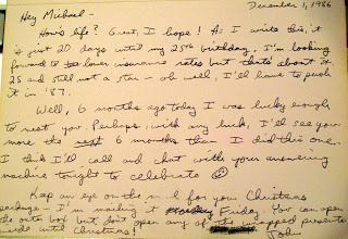 Hey Michael-How's life? Great, I hope! As I write this, it is just 20 days until my 25th birthday. I'm looking forward to lower insurance rates but that's about it. '25 and still not a star—oh well, I'll have to push it in '87.