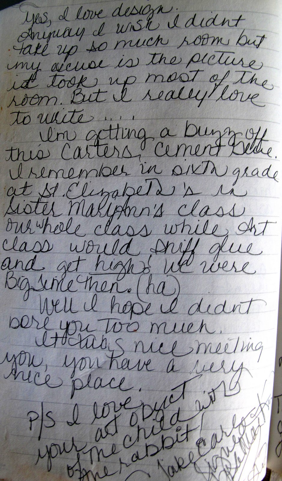 I'm getting a buzz off this Carter's cement glue. I remember in sixth grade at St. Elizabeth's in Sister MaryAnn's class our whole class—while in ART class—our whole class would sniff glue and get HIGH. We were big time then (Ha).