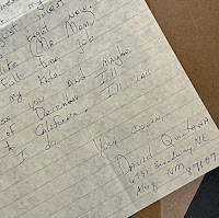 Funny, because the same day I received a Christmas Card from David’s mom, Beatrice Garcia-Quintana. She wrote a note that I thought courageous by using the phrase 'if I don't die before'. It made me want to meet her even more.