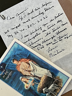 One more Christmas Card arrived from Las Vegas, NM this week. It was from Josie Garcia Abeyta (and her husband, Joe G Abeyta). Josie’s father is Augustine Garcia (my grandma Mathilde’s brother). Her note was simple and to the point. It was refreshing to get word of a ‘small-in-size' family. Ha-ha