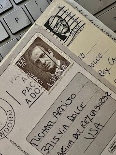 I was in awe by the ESPANA stamp Paloma posted on her postcard from Benidorm, Spain at Levante Beach (Playa de Levante)