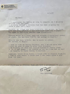 I received an interesting letter from another cousin in Alburquerque, NM. His name is Roy Quintana. I found it kind of cool because I went to high school with a guy named Ray Quintana. Maybe we were related somewhere down the line. Alas, Roy’s letter was interesting as he wrote about his first wife who was from England and her surname was Bloomfield. In any case, I’m happy when a relative—or even a close friend---writes to me. They took the time, and I cannot expect miracles.