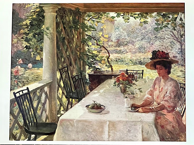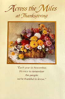 The dinner turned out well. I took a number of photos—not the greatest pics but it captured the jest of it. In the next day or two, Dorothy wrote me a card on her Thanksgiving Day. I loved the ON THE PORCH card of a woman, painted by William Chadwick: