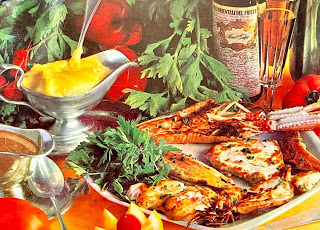 Alan sent a couple postcards that I received this week. One was from the ALFIO Ristorante in Milan, Italy. The meal that is pictured looked yummy. Alan wrote:
