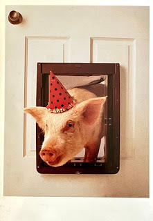 I received a 'piggy at a party' card from Barbara Reynolds (Ha-ha):