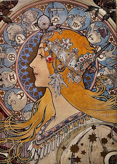 Paloma also sent a beautiful postcard of a DETAIL from ZODIAC by Czech artist, Alphonse Mucha 1887.