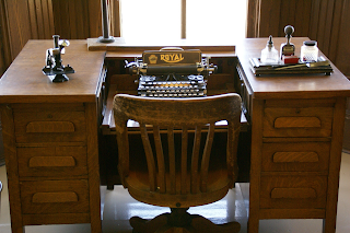 I had to use the bathroom and somehow I ended up in Hugh Hefner's study! How could I just walk in like that? Well, I took a photo of his desk (and of course, his conceit shined as I saw his portrait above his desk).