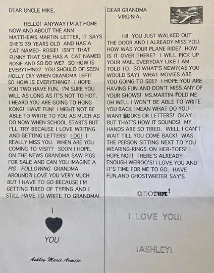 Ashley sent a duo letter for me and mom. That was so genius of her. How on earth did she come up with that idea? I loved how she did it. On the outside of the envelope she specifically wrote: DO NOT OPEN TILL VIRGINIA ARRIVES! Ha-ha...