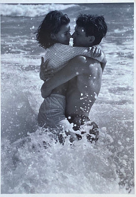 You know how happy I always am to hear from you. Receiving your last cards were extra special because they arrived when I was feeling pretty miserable from the laser. They brightened my day, my week and beyond. They are ALL wonderful. I can’t decide my favorite. THE WRITING DESK is really special and makes me think of you, everything about it: the eyeglasses, the artists pen, the warmth of the flowers and especially the foreign stamps. SMUGGLERS COVE makes me think of our ‘someday’ picnic. What a beautiful, secluded place. Have you ever been there? It must be up north with all of that greenery so close to the ocean. THE BLUE MOZART paints a clear message but makes me a bit sad because it makes me think of your paintings and how I still haven't been down to see them on your walls. The Black and White sidewalk scene is definitely unique with the guy in the lawn chair. He is quite determined to get a tan. Then there are those senior citizens sitting nearby, looking terribly bored with their swollen ankles and spider veins...as usual, you sent a wonderful assortment of cards and I appreciate them all!