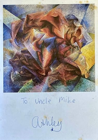 My niece, Ashley, sent a sweet card by an artist named Umberto Boccioni who painted this image in 1913 called DYNAMISM OF A SOCCER PLAYER. It doesn’t really depict the feeling of a soccer player though. Ha-ha. I wonder if I sent her that card. It’s quite possible. Ashley wrote: