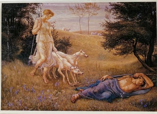 My first cousin, Carol Lucero, is quickly becoming a cool pen pal. Her dad (Howard) and my mom (Virginia) are brother and sister. She wrote again this week on a beautiful artsy card of a painting by Walter Crane known as DIANA AND ENDYMION. I wonder what the story is behind Diana and Endymion. It looks rather romantic.