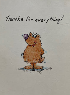 My Aunt Lela wrote to me this week. The teddy bear card was a sweet, soft touch. The teddy bear was looking out of a window, getting a feel for dull days. I had no pity for the teddy because there's always something to do: read a book, write a letter, create a project around the house, clean out the garage, exercise, sketch something, etc.