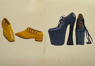 Barbara Reynolds had her birthday this week (March 23rd) and she sent a unique Fashion Designer, Vivienne Westwood (the blue shoes). The yellow shoes were from Mary Quant, an English/British designer who created them in the 1960s.