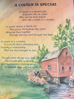 I was browsing in a card shop recently and this one made me think of you. You have been such a sweetheart, keeping in close touch that I just want you to know how much that means to me. I’m truly grateful for getting to know a cousin like you. You're really a very special person.
