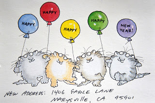 Alan also wrote out an Anniversary card from me, using an image of Cambria, California (a place we have escaped for a weekend more than a couple of times):