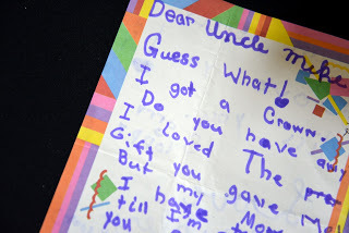 Dear Uncle Mike, Guess what? I got a crown. Do you have any?I loved the gift you game me but my mom said I have to wait till I’m older. I miss you a lot. I cannot wait until I get to see you! I really love you and miss you. Sorry so sloppy.Love, AshleyP.S. WBS-Write Back SoonP.S.S Sorry I didn’t write sooner.“Sometimes the wrong turns in life bring us to the right place.”--as heard from the 2018 film,FINDING YOUR FEET