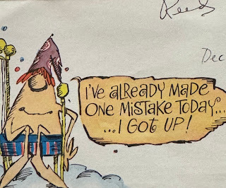 Again, your Benidorm/Espana postcard was too cool. You know how I love palm trees. It reminded me of our visit to Santa Cruz...a "few" years ago.I also got your card about seeing Woody Allend during the Christmas Holidays at the tiny lingerie store in Paris with his young Asian wife. That was a good sighting.