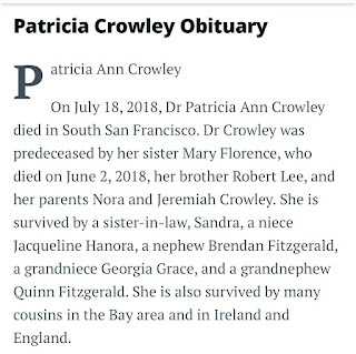 “In the end, we’re all animals. We’ve got to get dirty sometime.” --Eric Van Lustbader, THE KAISHO Sadly, my paternal first cousin, Cecelia Garcia-Markus died on February 28, 1999. Mom was very close to her. She would call all of the time. Her mother, Esther, and my dad were half-brother/half-sister as they both had the same mother (Mathilde) but different fathers. Cecelia died of cirrhosis of the liver. I remember when she gifted me a bottle of whisky a couple of Christmas' ago. I was flabbergasted. I don't drink heavy spirits. She just drank too much. I had to send a note to mom as I had been searching for photos of Cecelia. I know I have many. She had the gift of gab, loving to talk about so many relatives in the family. I now wish I spoke to her more--but I did have my fill of conversations with her. I do feel lucky about this.