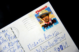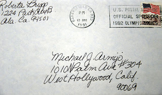 The other song that’s pretty good right now is by GEORGE MICHAEL (many say I resemble G. Michael, but I don't always see it) and ELTON JOHN called DON’T LET THE SUN GO DOWN ON ME. My first personal correspondence of the year was from Dorothy Rua. I loved the photo card of a young lad seated at his classroom desk. The desk reminded me of the same desk I had in 7thgrade. Cool photo card! Here’s what Dorothy had to write: