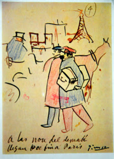 And a day later another postcard from Alan. This time he included a cool JOHN WAYNE stamp. He remembered that I’m born the same day as JOHN WAYNE. Cool. The postcard depicted of two French friends walking about the Paris streets together, a drawing by Pablo Picasso: