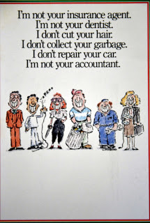 I’m not your insurance agent.I’m not your dentist.I don’t cut your hair.
