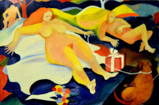 I sent her a colorful card of an original watercolor done in 1991 by Elizabeth Ranelagh. The title of the card is 'A GIFT'. I wrote: