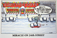 Birda sent a couple of funny ones: Reindeer trying to fly and a Parking Space available right in front of MACY’s…Ha-ha On the Miracle On 34th Street card Birda wrote: “Don’t laugh…it could be worth something."