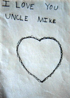 Lauren Armijo created her very own VALENTINE CARD for me “in pencil”. It could have used a bit of color but I guess she didn’t have access to her crayons. I liked the detail of her heart and the loving words: I LOVE YOU UNCLE MIKE