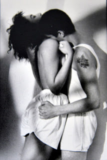 There was such an incredible logic to KISSING, such a metal-to-magnet pull between two people that it was a wonder that they found the strength to prevent themselves from succumbing every second. Rightfully, the world should be a whirlpool of KISSING into which we sank and never found the strength to rise up again.--Ann Patchett, BEL CANTO, a novelFrom Dorothy Rua, a Black and White sexy postcard: