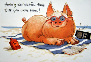 Lauren Freiman (Alan’s daughter) sent me a cute postcard of a piggy (how did she know I was born YEAR OF THE BOAR?). She was away at summer camp in Malibu and responded to a card that I sent her. She wrote: