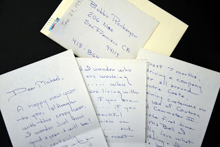 And the next day I received another letter (this time handwritten) from another former coworker from San Francisco. She has frizzy hair and reminds me a bit of the Rosanna Danna character that Gilda Radner developed so well on SNL-Saturday Night Live. Her name is Bobbie Renbarger. I recalled that Barbara Reynolds (another coworker) had given her my address. Bobbie wrote:January 23, 1991Dear Michael,A HAPPY NEW YEAR to you, although with this crazy war I wonder just how good a year it will be!