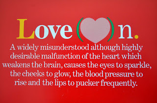 And Alan was in a ‘tie’ with my niece, Ashley, as he gave me three Valentine’s also. One described the meaning of the word LOVE (in the form of a noun): A widely misunderstood although highly desirable malfunction of the heart which weakens the brain, causes the eyes to sparkle, the cheeks to glow, the blood pressure to rise and the lips to pucker frequently. Inside was imprinted I LOVE YOU and he added “A LOT!” Sweetness.