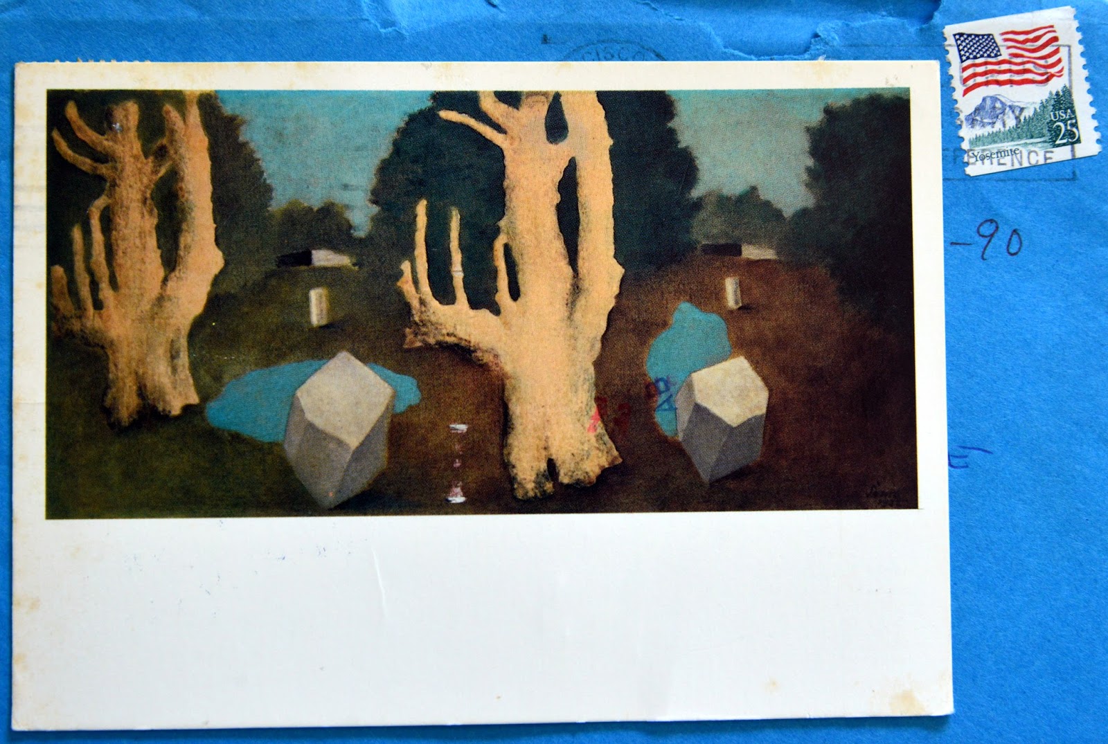 I’ve named my new car CASPER after a cartoon I loved since I was a child (the Friendly Ghost). I love the smoothness of the ride. I kept my ARMIJO5 California License plates. How could I let those go? The ‘new car smell’ is welcoming. I received a card from Barbara Reynolds. It depicted the trunks of two large trees. The image was a double paysage done in 1928 by Joseph Sima. It seems Barbara's mom is now 83 years old and will be going to a Senior Housing Center. Barbara wrote: