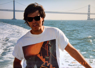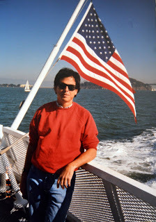 Meanwhile, Alan and I were on our escape to the San Francisco-Bay Area. We went to see my mother in Alameda, of course. I was 'in my turf’, so wanted to show Alan a good time. After Alameda we went to Sausalito and we took a pleasant ride on the ferry. It was a beautiful day. Alan took a photo of me on the boat wearing that T-shirt that had a cool image by that artist, Mark Kostabi.