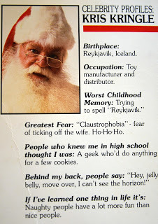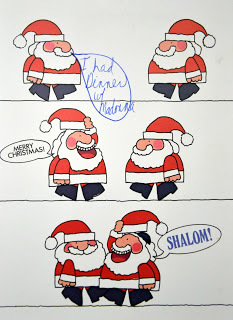 And so…that Christmas Feeling has begun. Another couple of days later I received two Christmas cards (one from my Alameda bike partner, Birda and one from the United Flight Attendant, Steven Antol). Both cards had different depictions of SANTA CLAUS.