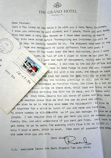 A few days later I was updated with more gossip about my former office in San Francisco from another former coworker, Reed Campbell. He took the time to type a one-page letter using stationary from THE GRAND HOTEL in Washington D.C. where he had vacationed recently. Reed wrote: