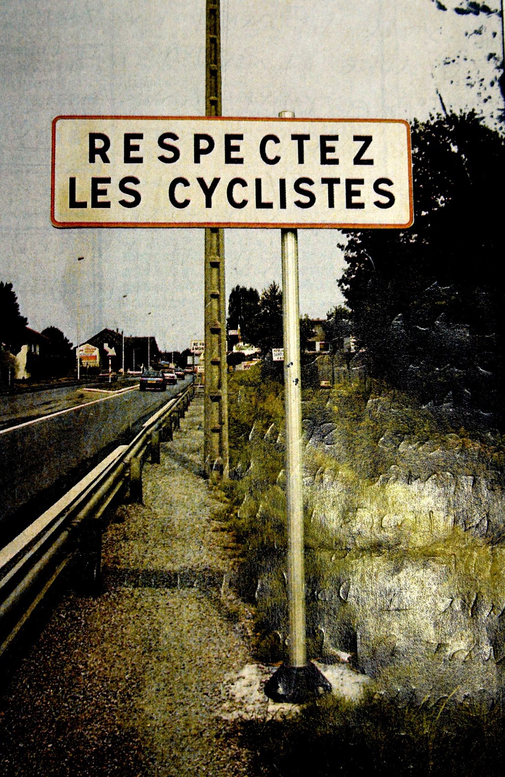 I’m on vacation this week (my Birthday week). I’ve just been resting. I did some painting of which I haven’t done much of lately. I was going to go home (to Alameda) but John, Ashley, and Holly are coming next month to visit with my mom around June 22nd—26th. We will hit DISNEYLAND and that sort of thing.I went through a lot of the old postcards you’ve sent me of France, Montpellier and Agde, etc. to get a preview of the beauty I will be revisiting and/or seeing for the first time.I remember how you like 501 LEVI’s and I thought you’d like this picture. I hope it doesn’t get too mangled by the time it reaches France. See You Soon! Love, Michael!On the other postcard of the “Respect the Cyclists” sign I wrote the following:May 31, 1990HI Paloma,