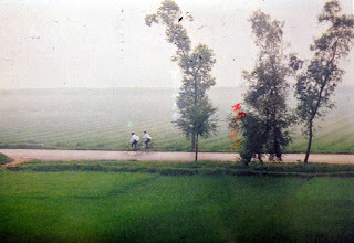 You get old, you thing about the past, both the bad and the good. You have time to consider it all. You try to turn even the worst that has happened into a gift.--Charles Baxter, from his short story AVARICE in his book THERE’S SOMETHING I WANT YOU TO DOI received a beautiful postcard from Barbara Reynolds of an early morning bicycle scene in CHINA, 1985. I loved the foggy feeling. Barbara wrote: