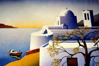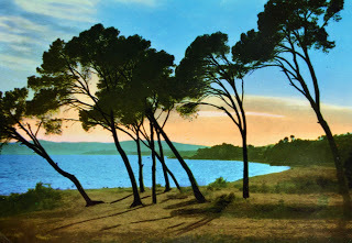 7-16-90Hi Michael,It’s Monday and I’m spending my lunch hour sitting atop a hill overlooking most of Walnut Creek where I sometimes DREAM IMPOSSIBLE DREAMS. I just received the cards you wrote on the plane out of Dallas, TX and mailed from France. I can’t begin to tell you how much I LOVE them! Both cards are so different and VERY much to my taste. The colors in the “Cap Roux” scene draw me into the coastal village with the gentle sea breeze rustling the skirt of my white summer dress. Looking out at the calming sea I know where I want to be…